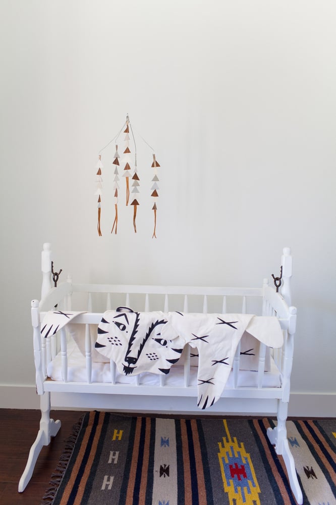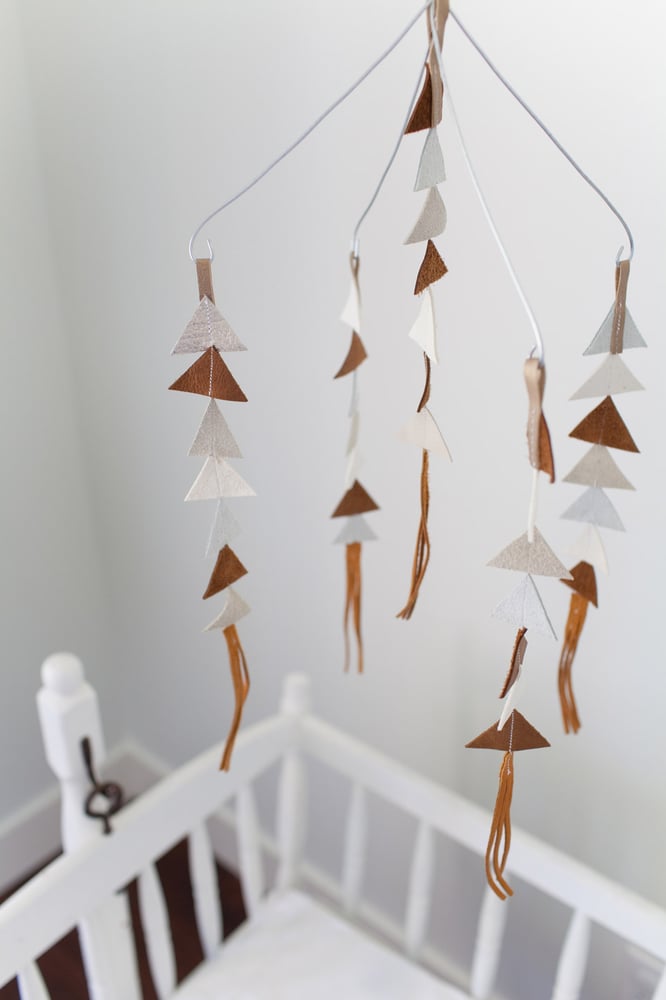 My leather triangle mobiles are 100% handmade from 100% leather. Each triangle is cut by hand and sewn together with care.